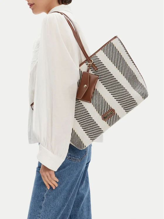 Сумка Nine West – це елегантна пропозиція для жінок, які цінують стиль і практичність. Виготовлена з високоякісного текстильного матеріалу, вона вражає своїм жорстким оздобленням, яке додає їй міцності та вишуканого вигляду. Чорний колір робить її універсальною і чудово поєднується з будь-яким образом, як на кожен день, так і на спеціальні випадки. Камера на блискавці гарантує безпеку ваших найцінніших речей, а знімна косметичка додає їй функціональності, дозволяючи зберігати додаткові дрібниці. Ця сумка – ідеальний вибір для сучасних жінок, які прагнуть поєднувати моду з комфортом.