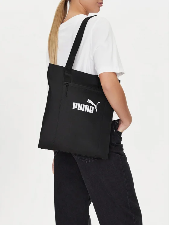 Чорна сумка Puma — це чудовий аксесуар для активних жінок, які цінують спортивний стиль і функціональність. Виготовлена з текстильного матеріалу, вона має м'яку структуру, що забезпечує зручність носіння. Сумка настільки містка, що вміщує формат A4, завдяки чому підходить як для повсякденних, так і для більш формальних ситуацій. Камера на блискавці гарантує безпеку збережених речей, а ручки на плече і вушка забезпечують різноманітність носіння. Ідеальна для тренувань, покупок чи зустрічей з друзями — сумка Puma поєднує стиль з практичністю.